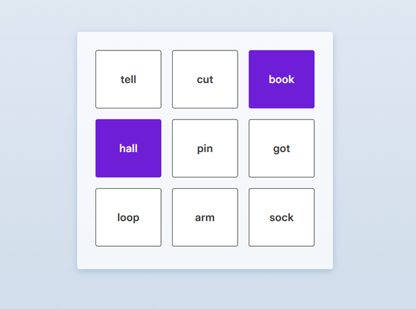 This is a test of phonological loop functioning in which the child hears sequences of words through the computer speakers/headphones. They are then required to recall the words in the same order in which they were presented, selecting the target words from within a 3 x 3 matrix of nine words on the computer screen. All the words in this test (target words and distractors) are common single-syllable words between three and five letters in length, selected at random from a large data set, with built-in checks to avoid rhyming pairs.